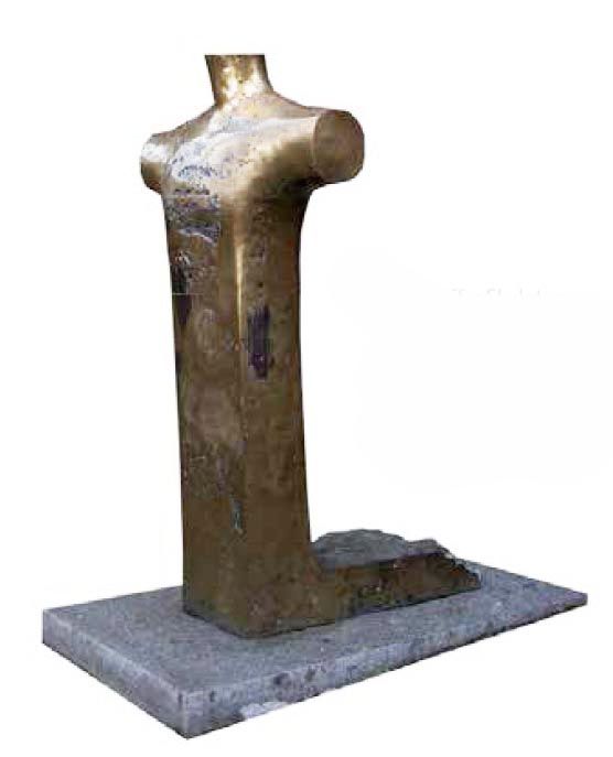 Bonhoeffer-Skulptur von Karl Biedermann an der Westseite der Zionskirche in Berlin-Wedding. Kreuzsymbol und knieende Person in einem.