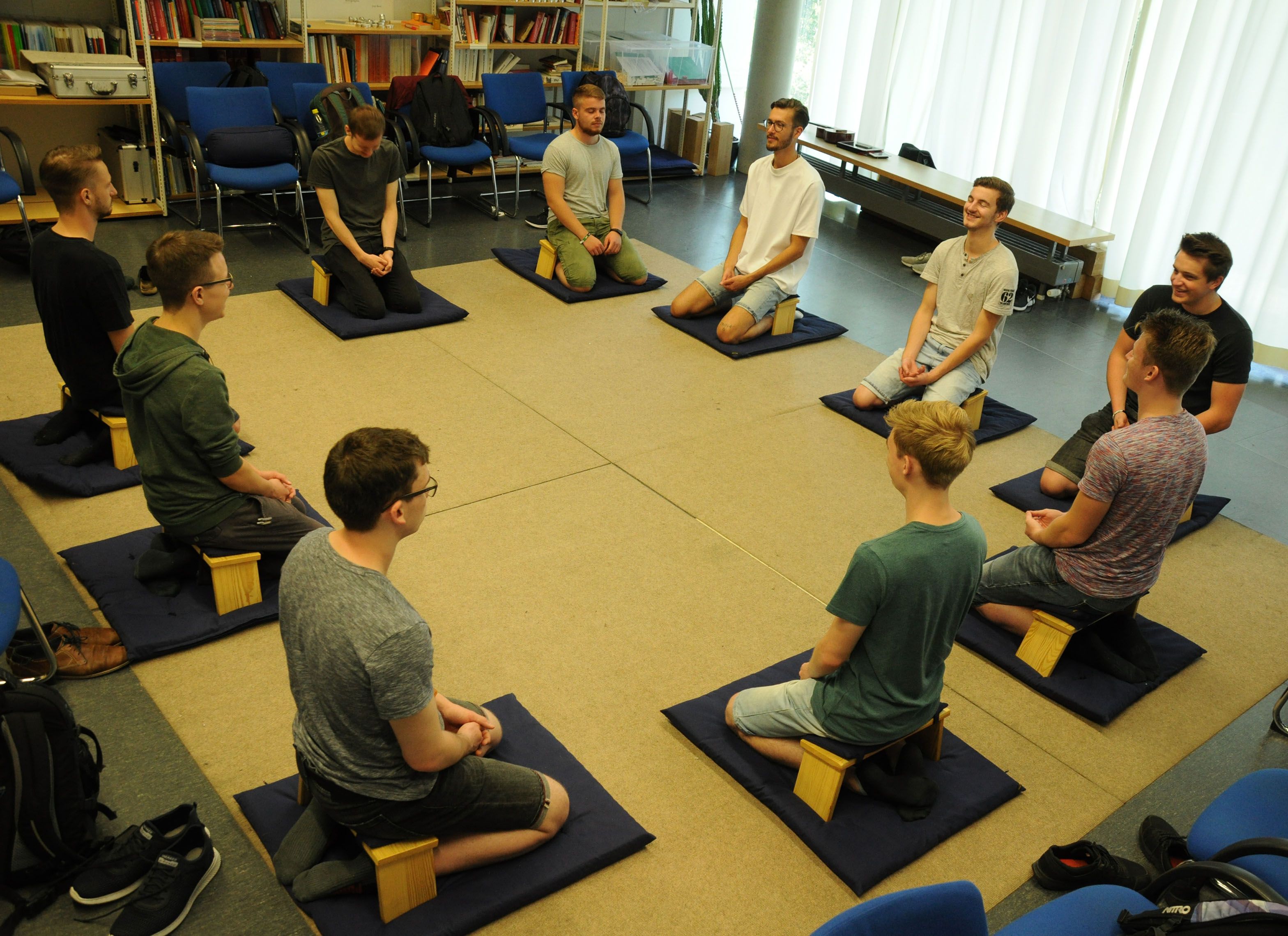 Der Raum, in welchem Sie die Schülerinnen und Schüler zu meditativen Übungen anleiten, sollte nicht zu hell sein, gut zu lüften, in einer (relativ) ruhigen Lage und groß genug, dass ein Sitzen (mit genügend Abstand) in einem großen Kreis möglich ist.