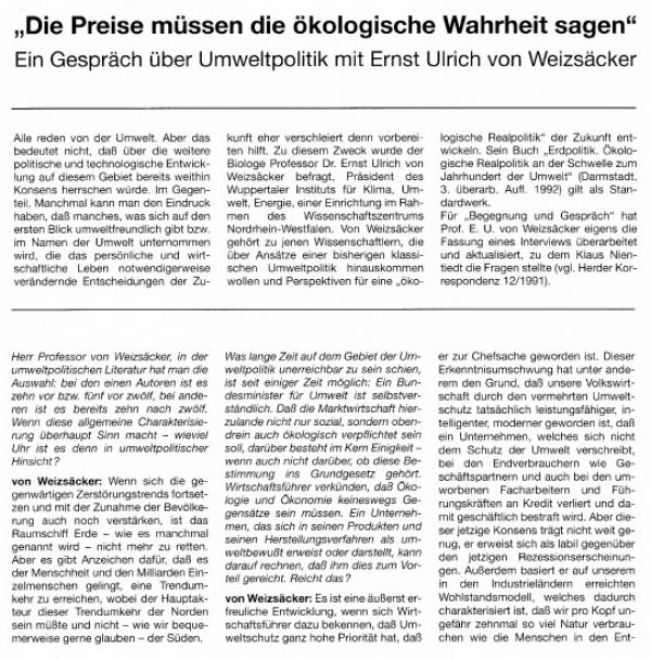 Ein Gespräch über Umweltpolitik mit Ernst Ulrich von Weizsäcker