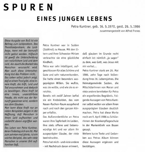 Petra Kuntner, geb. 16.5.1970, gest. 26.5.1986