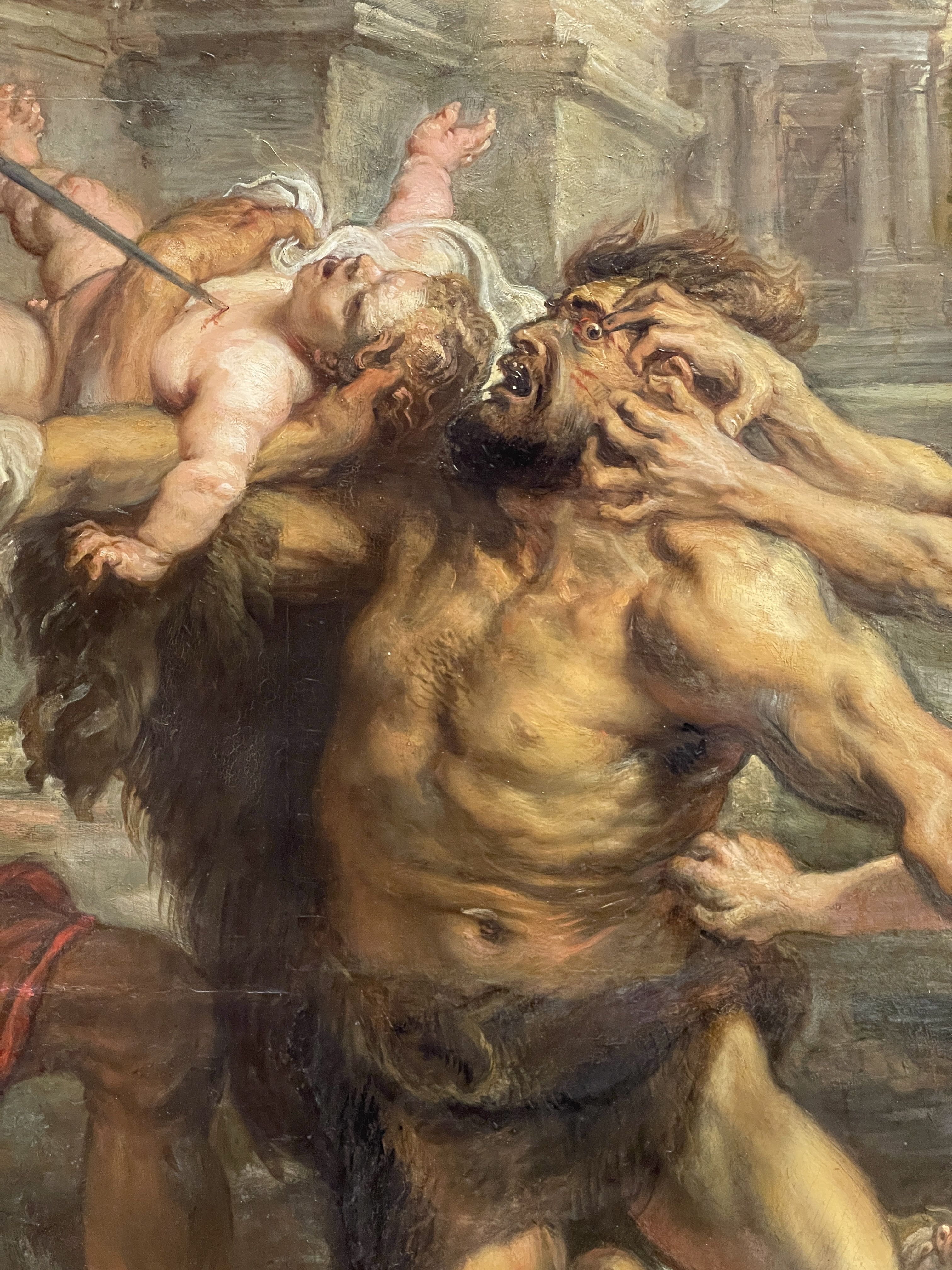 Anders als bei den »Folgen des Krieges« setzt sich beim »Kindermord« Rubens nicht so sehr mit den Folgen, sondern mehr mit den anthropologischen Ursachen des Krieges auseinander. Damit wirft er Fragen auf: