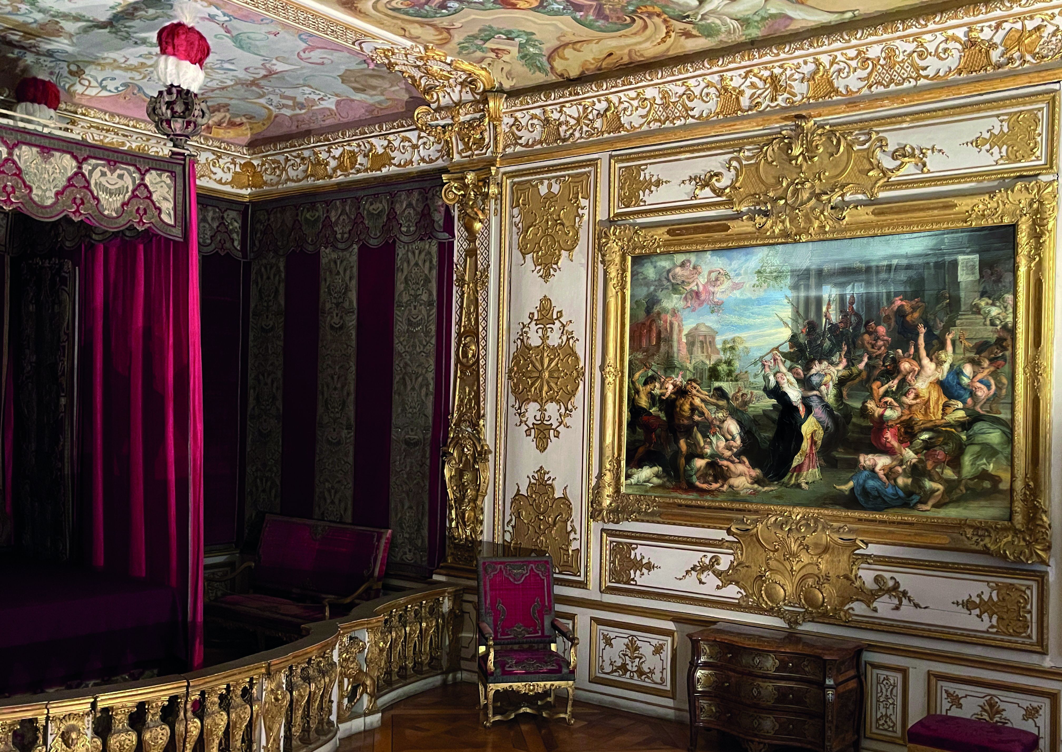 Umso überraschender ist, dass dieses Bild im Paradeschlafzimmer des Fürsten im Schloss Schleißheim hing. Der in der Wandvertäfelung eingelassene Rahmen war der ursprüngliche Platz für dieses Werk. Der Fürst sah mit dem ersten Blick des Tages und beim Schlafengehen Rubens´ Mahnung vor dem Krieg.